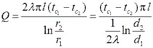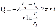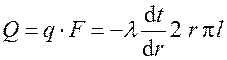 Тепловой поток через цилиндрическую стенку длиной l можно найти по закону Фурье