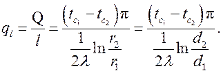 Тепловой поток, отнесенный к единице длины цилиндрической стенки (трубы), называется линейной плотностью теплового потока и обозначается