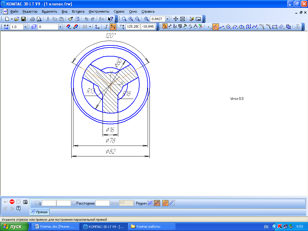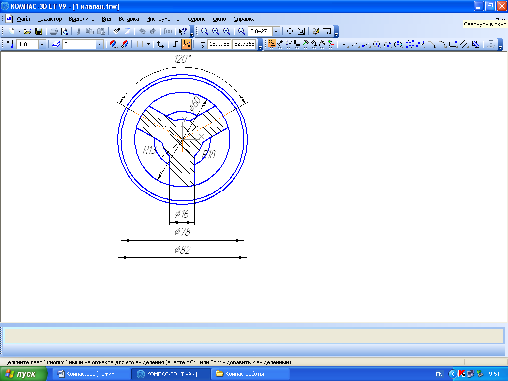 Цель работы: изучение интерфейса программы Компас, знакомство с панелями инструментов Геометрия и Размеры, создание фрагментов и чертежей при помощи встроенных инструментов.