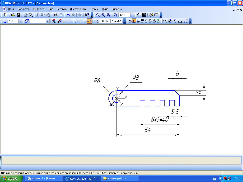 2.6. При нанесении размеров может потребоваться использовать команды контекстного меню Параметры размера и Текст надписи. При выставлении одного из линейных размеров в записи "8x5=?" вместо знака умножить, поставьте малую латинскую букву "х")