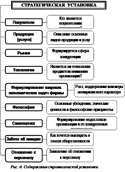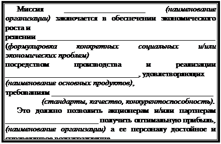Миссия организации, или стратегическая установка – состоит в формулировке ответа на вопрос: в чем состоит конечный смысл деятельности организации?
