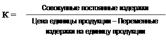 Например, если совокупные постоянные издержки равны 252000 руб, а цена и переменные издержки единицы продукции соответственно равны 10 и 4 руб., то