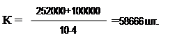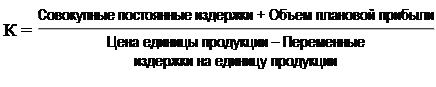Например, если совокупные постоянные издержки равны 252000 руб, объем плановой прибыли 100000. Цена и переменные издержки единицы продукции соответственно равны 10 и 4 руб., то