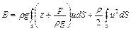 , получим удельную энергию жидкости Е, протекающей в единицу времени через рассматриваемое живое сечение потока: