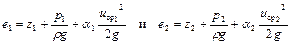 Полученная зависимость применима к любому сечению потока. Если, например, u ср1 и u ср2 – средние скорости в двух разных сечениях, p 1 и р 2 – гидродинамические давления в центрах тяжести этих сечений, a a 1 и a 2 – соответствующие коэффициенты кинетической энергии, то применительно к двум избранным сечениям можно написать: