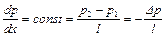 Пусть в сечении 1-1 давление равно p 1, а в сечении 2-2 – p 2 т.е. на длине l давление в потоке изменилось на величину