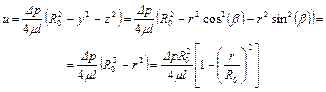 Максимальная скорость имеет место в центре сечения трубопровода (при r= 0)