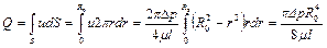 Применим полученный закон распределения скоростей для расчета объемного расхода жидкости. Элементарный расход через бесконечно малую площадку dS равен