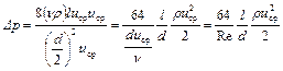 Из сравнения двух последних выражений следует, что при ламинарном режиме течения коэффициент потерь равен