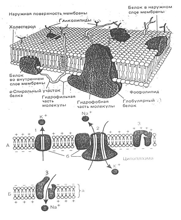(Б): 1 – калиевый канал; 2-натрий-калиевый насос; 3 – натриевый канал.