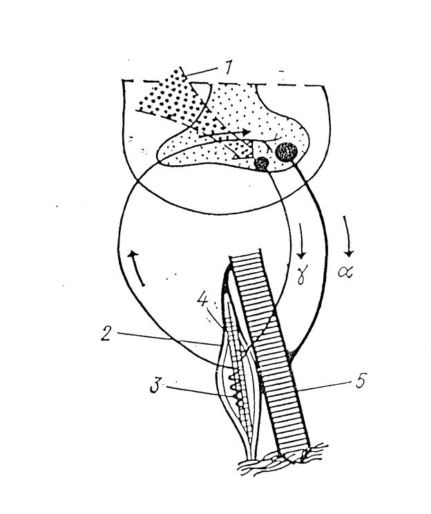 5 – поперечно-полосатая мышца; α – мотонейрон; γ – гамма нейрон