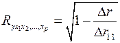 – коэффициент детерминации для уравнения множественной регрессии,
