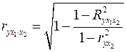 Из приведенных выше формул частных коэффициентов корреляции видна связь этих показателей с совокупным коэффициентом корреляции. Зная частные коэффициенты корреляции (последовательно первого, второго и более высокого порядка), можно определить совокупный коэффициент корреляции по формуле: