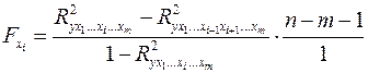 -критерий построен на сравнении прироста факторной дисперсии, обусловленного влиянием дополнительно включенного фактора, с остаточной дисперсией на одну степень свободы по регрессионной модели в целом. В общем виде для фактора