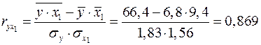 Пример. Оценим качество уравнения, полученного в предыдущем параграфе. Сначала найдем значения парных коэффициентов корреляции: