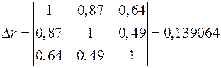 . Для этого сначала найдем определитель матрицы парных коэффициентов корреляции:
