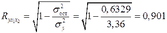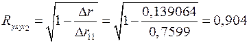 Тогда коэффициент множественной корреляции по формуле (2.16):