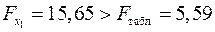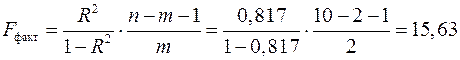 -критерия Фишера. Фактическое значение