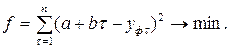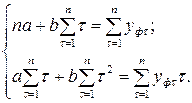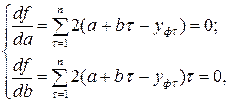 Известно, что функция имеет экстремум, если её производная равна нулю. Дифференцируя функцию по искомым переменным и приравнивая производную нулю, получаем систему линейных уравнений, решая которую найдём неизвестные эмпирические коэффициенты: