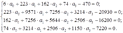 Система уравнений, в результате решения которой будут определены эмпирические коэффициенты, будет следующей: