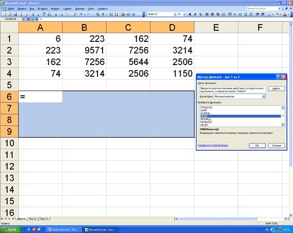 - A6:D9). Функция «определить матрицу обратную данной» относится к категории «математические функции». Нажмём кнопку