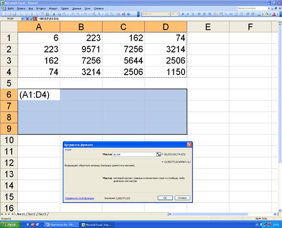 Рисунок 4.4. Диалоговое окно функции «МУМНОЖ».