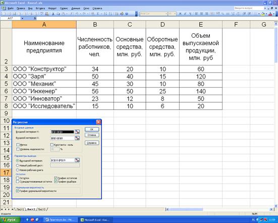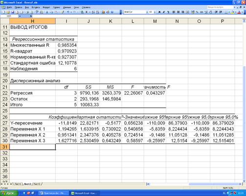 Достоинством «Пакета анализа» является то, что он позволяет также получить качественную оценку полученной экономико-статистической модели.