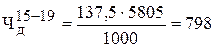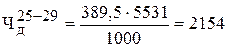 | Возрастные группы | Численность женщин, тыс.чел. | Рождаемость (дети, родившиеся в среднем за 5 лет на 1000 женщин), чел. | Число детей, тыс.чел. |