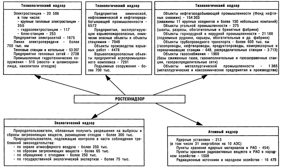 Федеральная служба по экологическому, технологическому и атомному надзору (Ростехнадзор) осуществляет надзор за соблюдением правил по безопасному ведению работ на объектах в соответствии со схемой, приведенной на рис. 9.