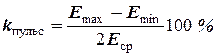5. Освещенность должна быть постоянной во времени. Для оценки условий работы глаза в мелькающем свете, который создают газоразрядные лампы, вводится коэффициент пульсации освещенности, %, который характеризует относительную глубину изменения освещенности от E max до Е min в течение одного периода ее колебанияи определяется по формуле