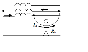 Рис. 16. Схема прохождения тока через тело человека при двухфазномприкосновении: