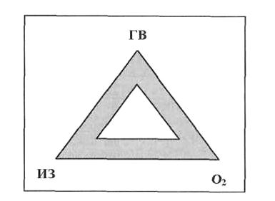 ГВ – горючее вещество; О2 – окислитель; ИЗ – источник зажигания
