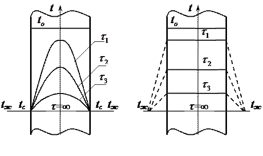 , т.е. термическое сопротивление теплоотдачи становится несоизмеримо малым по сравнению с термическим сопротивлением теплопроводности, и поэтому температурное поле определяется условиями распространения теплоты внутри тела.