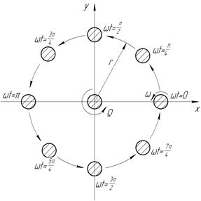 Проследим за движением ротора в течение промежутка времени, за который вал совершит один полный оборот вокруг своей деформированной оси. Примем, что в момент начала наблюдения t=0. Тогда за указанный промежуток времени фаза колебаний