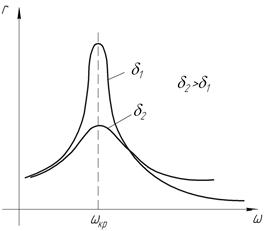 Введение в опоры ротора демпферов позволяет снизить прогиб вала при прохождении через резонанс за счёт рассеяния энергии колебания. Амплитудно-частотная характеристика ротора с различной степенью демпфирования показана на рис. 6.23.