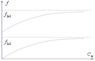 Если Cm=0 (это соответствует шарнирному замку лопатки), то частота первой изгибной формы равна нулю, то есть первая изгибная форма колебаний отсутствует. В этом состоит преимущество применения шарнирного замка (который, однако, имеет больший вес). Остальные формы изгибных колебаний сохраняются, но частоты их уменьшаются (рис. 14.7).