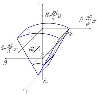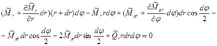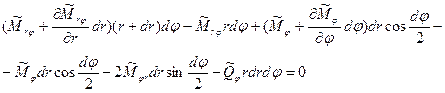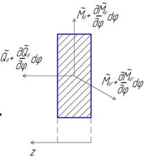 Получим систему дифференциальных уравнений, описывающую колебания диска, из рассмотрения уравнений (15.1) – (15.5) и условий равновесия элемента диска.
