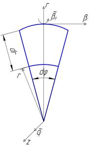 Выделим элемент диска двумя радиальными плоскостями, расположенными под углом