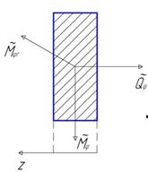 - погонная перерезывающая сила, которая возникает от касательных напряжений. Она действует в направлении оси Z на площадке с нормалью r.