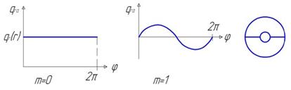 Формы колебаний с m=0 и различным количеством узловых окружностей называют зонтичными.