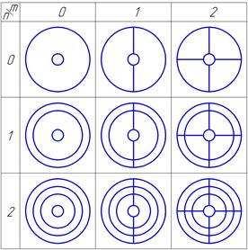 Формы колебаний диска можно представить в виде таблицы (рис.15.3).