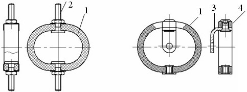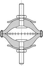 Виброизоляторы могут иметь различную форму упругодемпфирующих элементов. На рис. 17.4 приведены виброизоляторы с упругодемпфирующим элементом втулочного типа – бескорпусной (а) и корпусной (б). К втулочным виброизоляторам относятся, например, виброизоляторы из материала МР типа ВВ, ВП. На рис. 17.5 приведены виброизоляторы с упругодемпфирующим элементом кольцевого типа (АМГ, АК). На рис. 17.6 - виброизоляторы с упругодемпфирующим элементом колокольчикового типа (ДКА, ДКУ). В качестве упругодемпфирующего элемента может применяться трос (рис. 17.7).