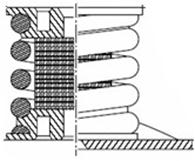 1. Стальные пружины. Обладают значительной прочностью, невысокой стоимостью, их характеристики линейны, что упрощает расчет виброзащитной системы. Однако они обладают слишком низким рассеиванием энергии колебаний – коэффициент передачи на резонансе достигает 100 и более, что может повести к разрушению оборудования при переходе через резонанс.