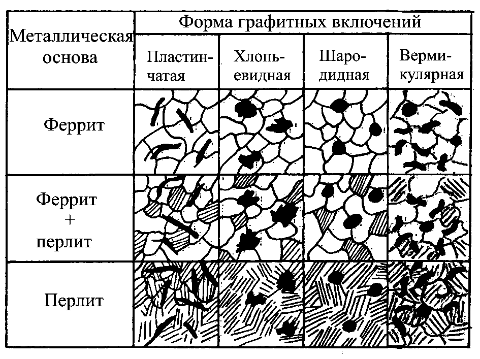 1.4.5 Классификация чугуна по структуре металлической основы и форме графитовых включений