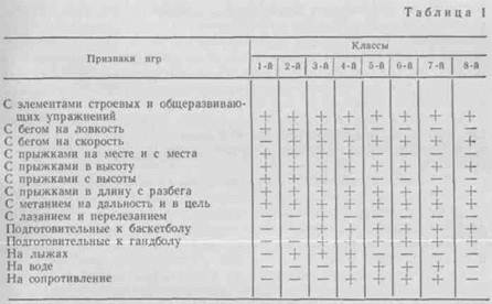 Более тонкие различия определяются трудностью игровых действий, их двигательным содержанием. Поэтому преподаватель должен учитывать особенности подготовленности всей группы и отдельных учеников, подбирая игры и роли в них в соответствии с возможностями занимающихся.
