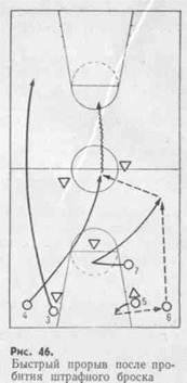 Быстрый прорыв может быть организован и после неудачного штрафного броска (рис. 46).