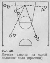 Личная защита на половине площадки реализуется в двух основных вариантах: прессинге и концентрированной защите.