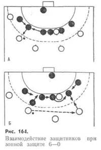освободившейся зоны) и к переключению защитников при передвижениях и заслонах нападающих (рис. 164).