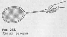 пальцы располагают на боковых гранях так, чтобы первые фаланги немного выходили за пределы средней грани. Чтобы лучше управлять ракеткой, пальцы слегка расставляют вверх по ручке. При этом кисть не должна быть закрепощена. Пальцы лишь слегка сжимают ручку. Такая хватка создает условия для активной работы кисти при любых ударах (рис. 278).