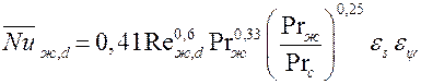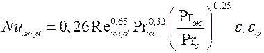 В формулах в качестве определяющих температуры, скорости и размера приняты: средняя температура потока; скорость потока в узком сечении; наружный диаметр труб.